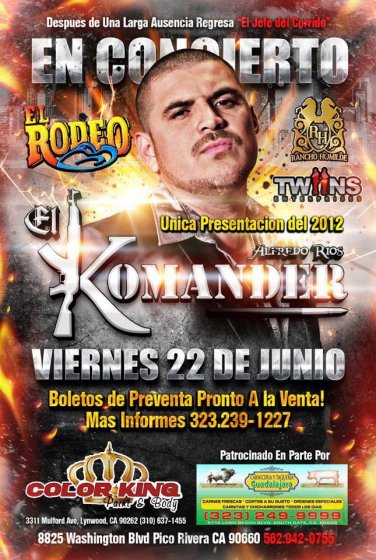 6/22/12 Rancho Humilde presenta a EL KOMANDER en Concierto en El Rodeo de Pico Rivera!...para mas informacion text 562-307-04488